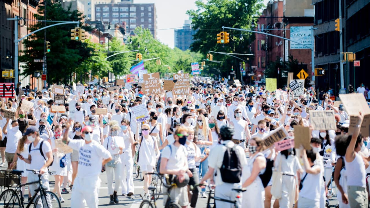 Ante las multitudinarias manifestaciones en contra del racismo, el gobernador Andrew Cuomo advirtió que existe la posibilidad de que los contagios en la Gran Manzana aumenten considerablemente, aseguró que revertirá la reapertura del algunos lugares donde no se están acatando las medidas de prevención establecidas y pidió a quienes protestan practicarse la prueba de detección. Por su parte, activistas pintaron en una calle de Brooklyn la frase ‘Black Lives Matter’.