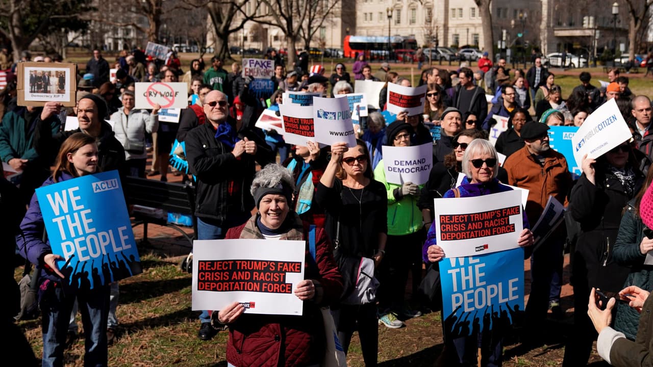 De costa a costa, cientos de manifestantes protestan contra la declaración de emergencia de Trump