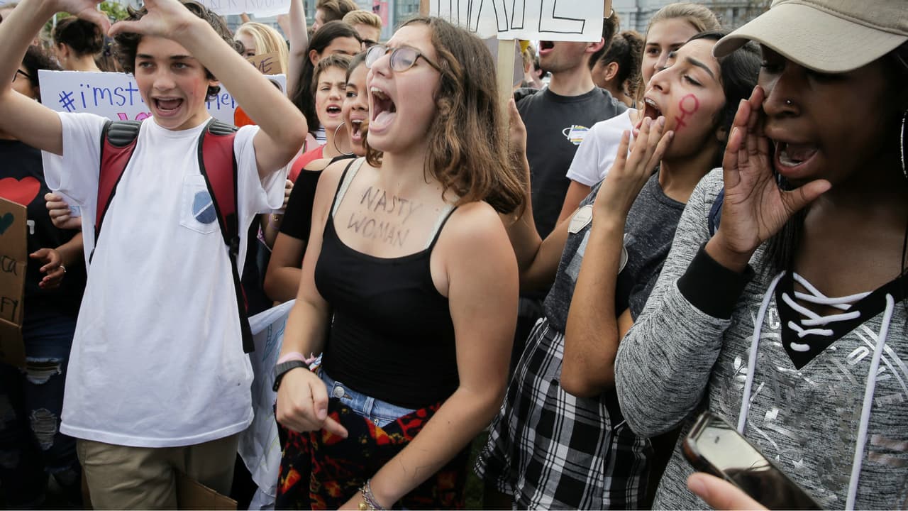 Decenas de estudiantes expresan su descontento con la llegada de Trump a la Casa Blanca
