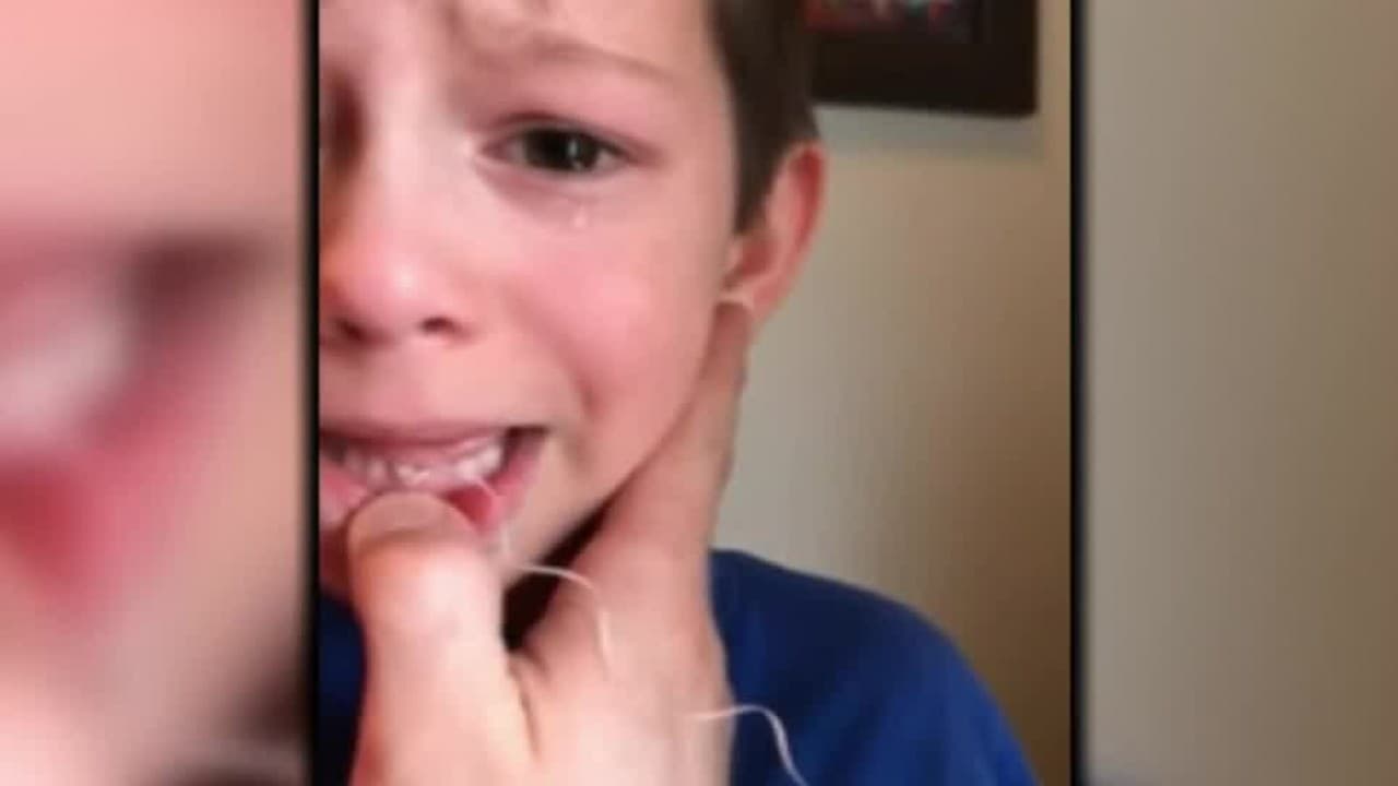 Del tormento a la risa: su madre le ata un diente de leche a un largo hilo para sacárselo