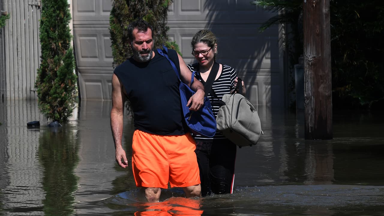 José Pérez y Benjamín Flores intentan encender sus vehículos para volver a sus trabajos, en medio de la devastación causada por el fenómeno meteorológico. Residentes de zonas donde comenzaron a bajar las inundaciones ayudan a los damnificados de sus comunidades y tratan de recuperar pertenencias.