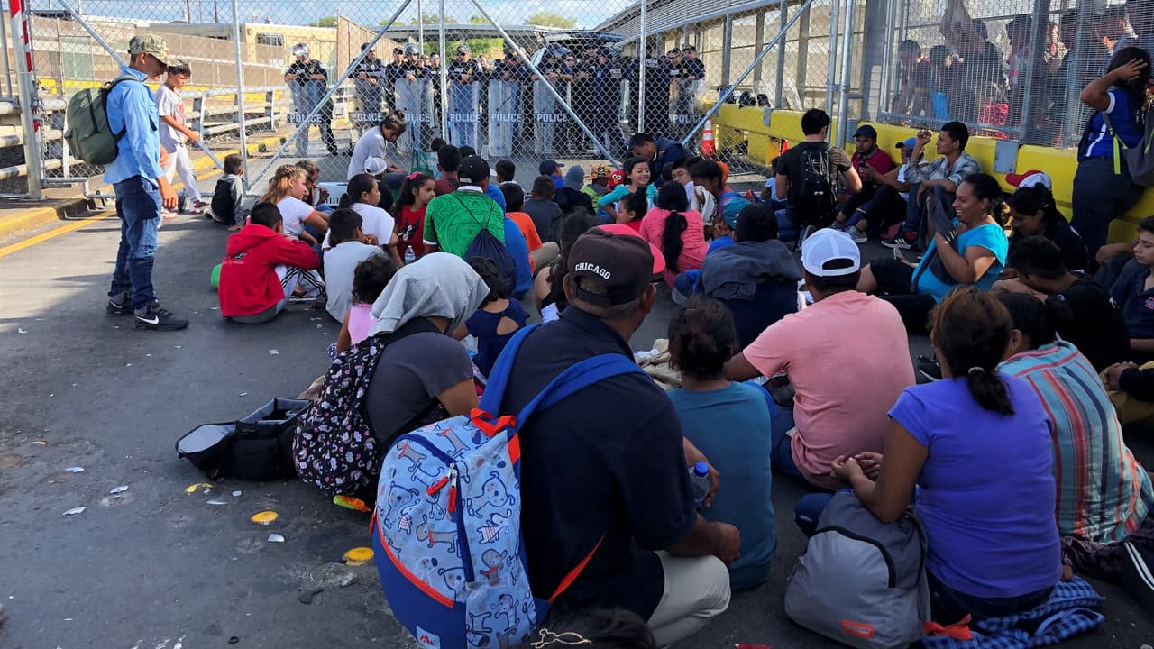 Desesperados, unos 400 migrantes bloquean el puente entre Matamoros, México, y Brownsville, Texas