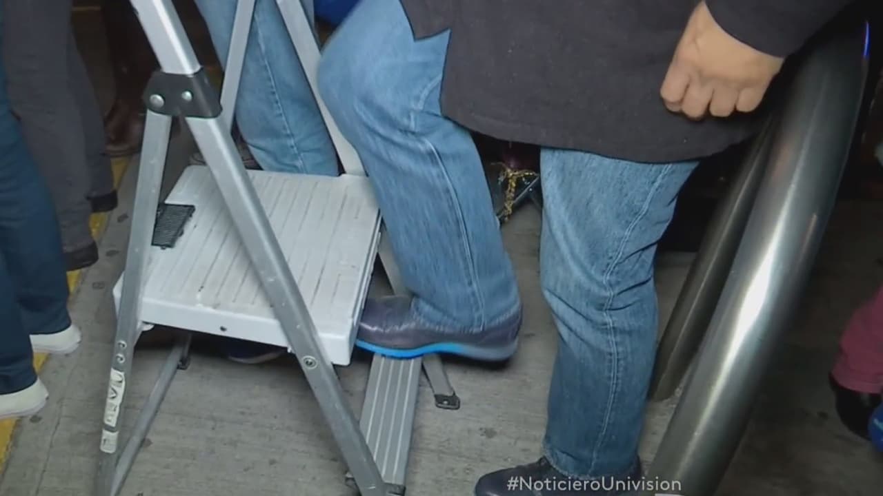 Con la ilusión de ver al Papa Francisco, miles de devotos utilizan escaleras.