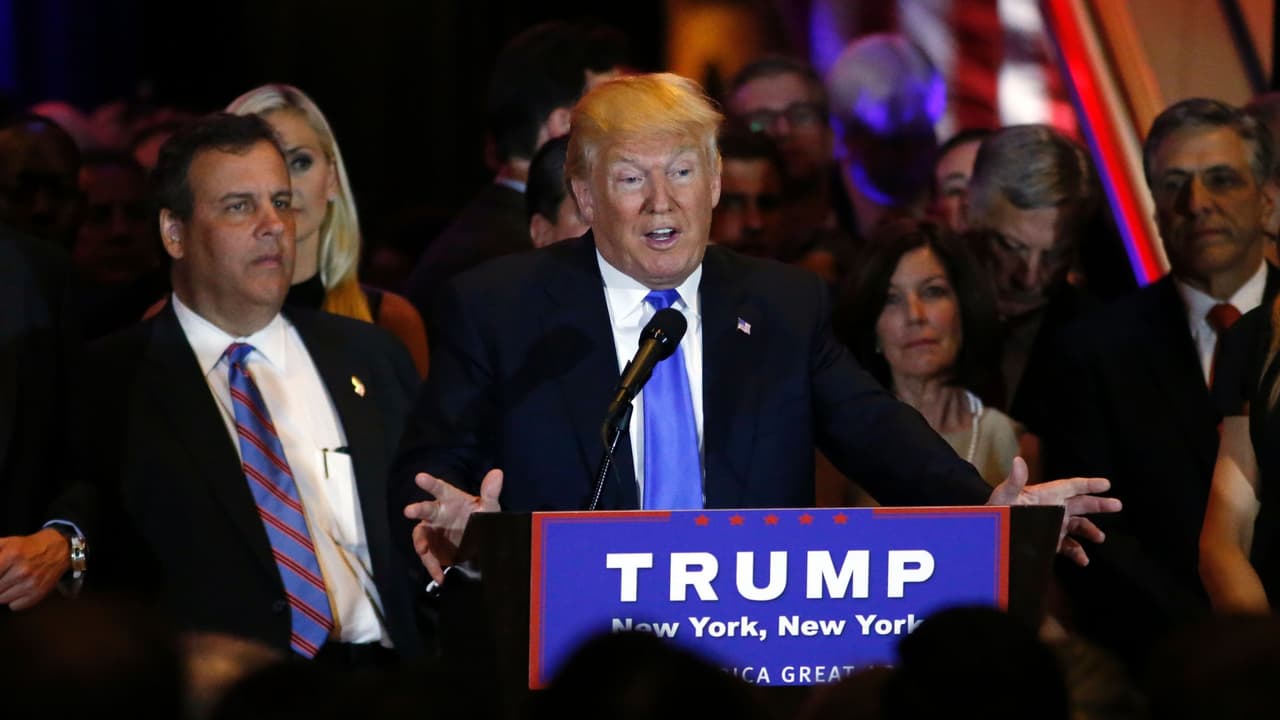 El magnate dijo en su discurso de triunfo que sus competidores, Cruz y Kasich deben pensar en retirarse de una contienda que ya perdieron.