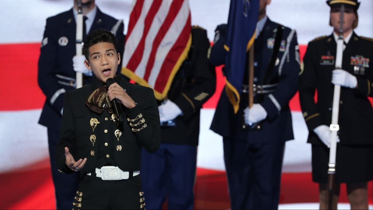Sebastien de la Cruz, de 14 años interpretó el himno nacional vestido de charro.