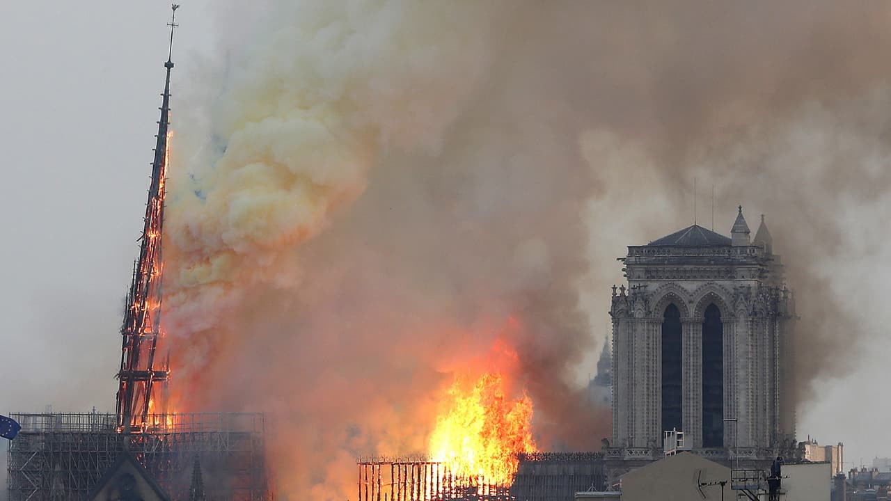 El momento en que colapsa por las llamas parte de la catedral de Notre Dame en París