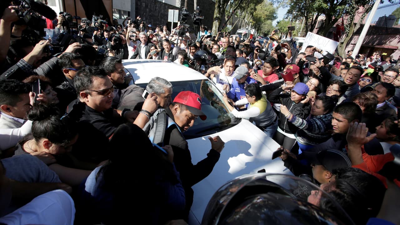 El momento en que la multitud rodea el vehículo en el que AMLO sale de su domicilio rumbo a la Cámara de Diputados