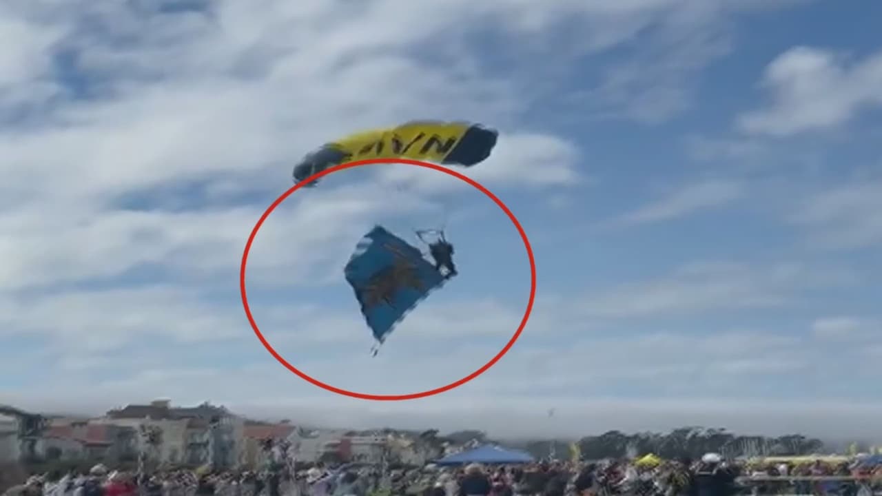Durante un espectáculo aéreo de la Marina de EEUU en California, un paracaidista cayó encima de una madre y su hija que se encontraban entre los espectadores. El hombre resultó ileso; sin embargo, la mujer y su hija tuvieron que ser llevadas a un hospital.