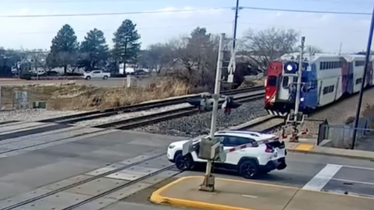 Un video captó el momento exacto en que un tren chocó contra un auto que quedó atrapado en las vías luego de ser empujado por otro vehículo en Layton, Utah. El conductor logró escapar y ponerse a salvo segundos antes del choque.