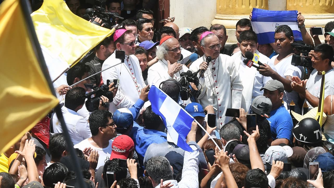 Agitando banderas y con gritos de "Basta de violencia", miles de personas dieron la bienvenida a una comitiva de la Iglesia Católica que, con su presencia, logró que las fuerzas del régimen de Daniel Ortega detuvieran la represión por primera vez en más de un mes.