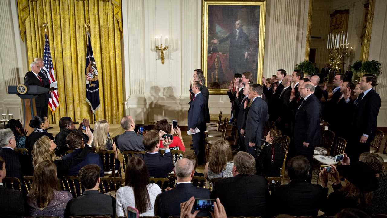 El Presidente Trump habló de una posible reelección en la ceremonia de juramentación de sus asesores más cercanos