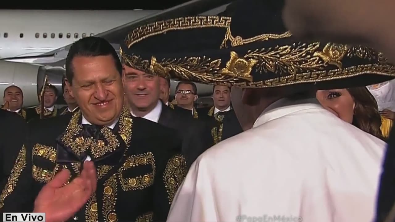 A pesar de que lo devolvió al mariachi, el Papa se puso el sombrero y sonrió ante las cámaras.
