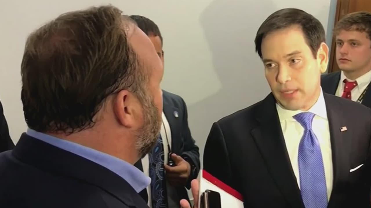 La reunión tenía como objetivo reunir a los representantes de las grandes empresas de internet para prevenir la interferencia rusa en las elecciones. Pero en los pasillos del Senado, Alex Jones increpó al senador Rubio.