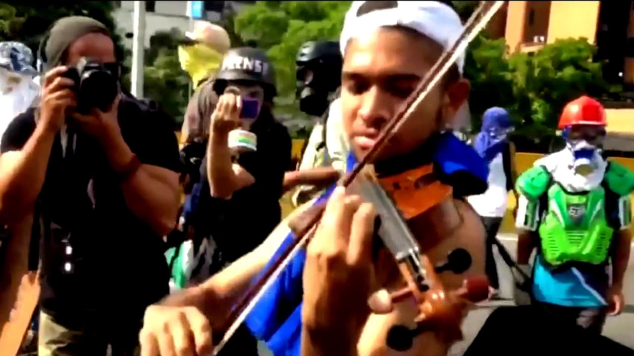 El violinista en las protestas de Venezuela denuncia que la Guardia Nacional destrozó su instrumento