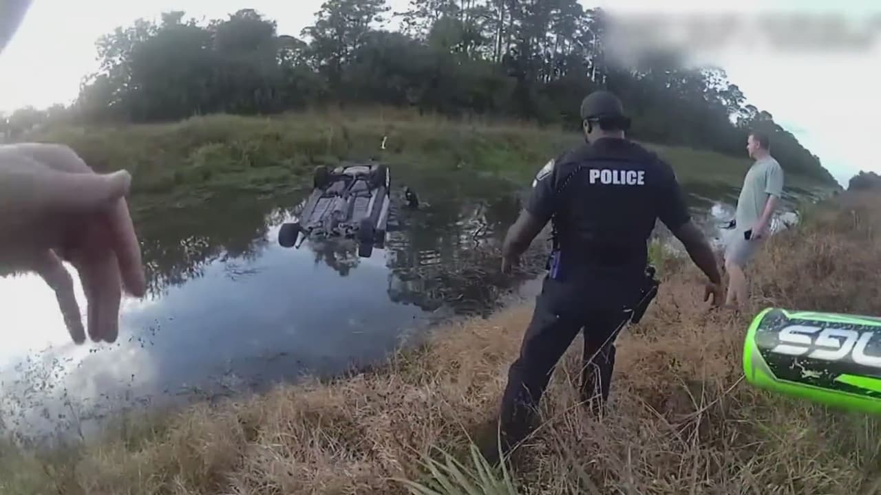 En video quedó grabado el momento en que oficiales rescatan a una embarazada que cayó con su auto en un canal de Florida. Los uniformados, que vieron el vehículo volcado y sumergido en el agua, tuvieron que utilizar un bate de béisbol para romper una de las ventanillas para poner a la salvo a la mujer.