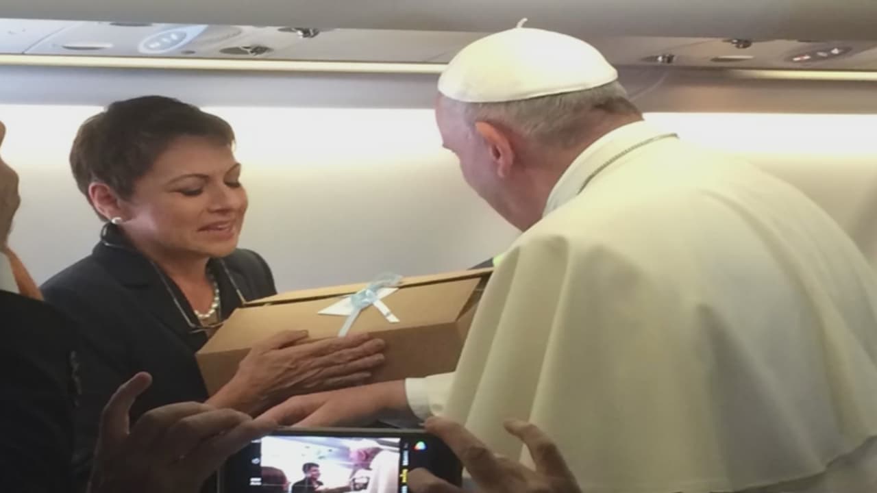 Desde Miami, María Antonieta Collins llevó hasta Roma una caja de empanadas argentinas para dárselas al papa Francisco. La periodista de Univision logró sorprender al máximo líder de la Iglesia Catolica con este platillo, que fue preparado por inmigrantes.