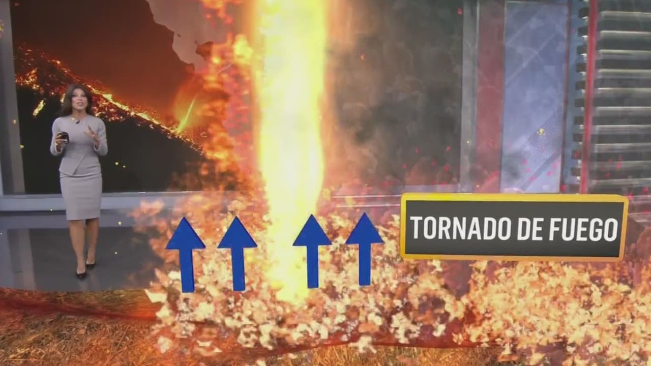 La meteoróloga Jessica Delgado nos explica en realidad aumentada qué son los tornados de fuego, cómo se forman y por qué resultan tan peligrosos. Además, nos cuenta cuándo se espera que regresen los vientos de Santa Ana que podrían avivar los incendios forestales en California. También puedes ver: El raro 'tornado de fuego' visto en las condiciones extremas del incendio Palisades en California.