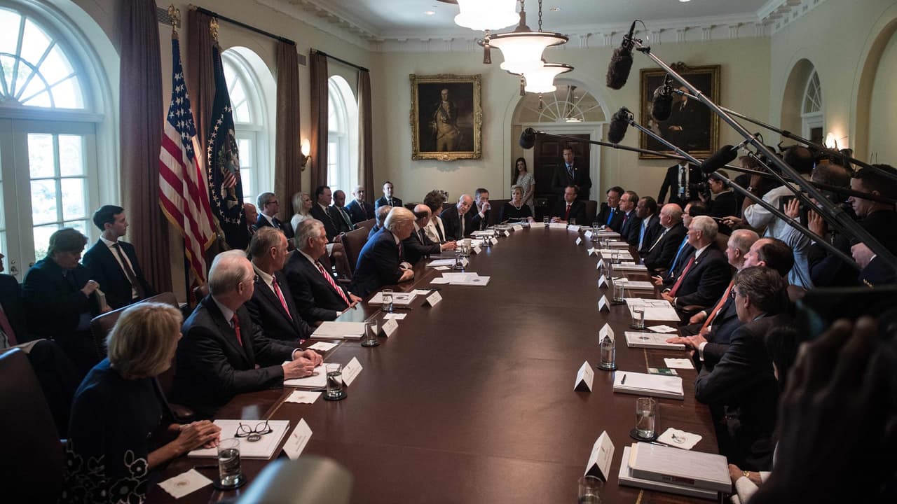 En una inusual reunión, miembros del gabinete de Trump elogiaron el trabajo del presidente de EEUU
