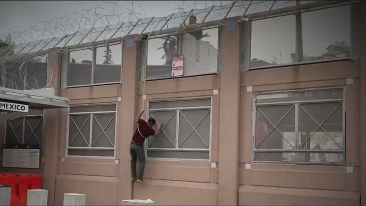 En las imágenes se evidencia a al menos cinco indocumentados que atravesaron el muro fronterizo en Nogales, Arizona, ayudados por un coyote que les amarró una cuerda a la cintura para deslizarlos por la estructura. Las autoridades indican que muchas veces los inmigrantes resultan heridos porque la cuerda se rompe o el contrabandista no puede sostenerlos.