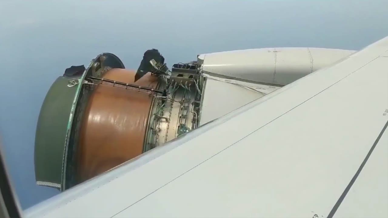 El aterrador momento en que el motor de un avión se descompone en pleno vuelo