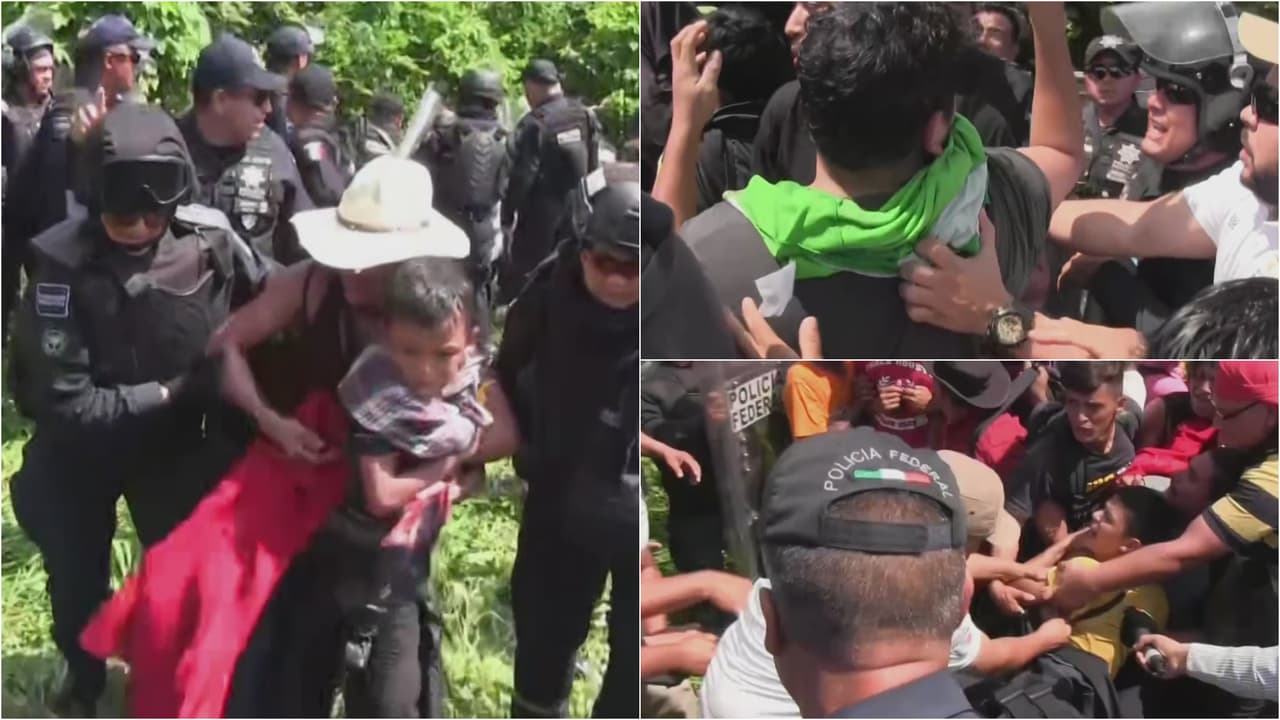 El momento en el que la policía de México dispersa a cientos de migrantes de otra caravana