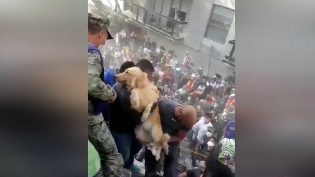 En las imágenes se observa cómo socorristas sacan de los escombros a un perro que se encontraba atrapado tras el terremoto de 7.1 ocurrido en México.