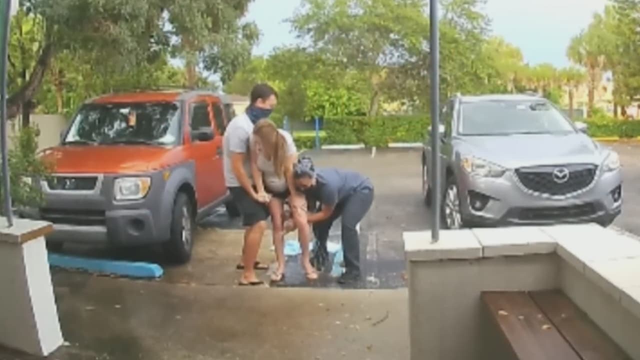 Susan Anderson y su esposo intentaron llegar al centro donde se encontrarían con la partera que los atendería, pero a escasos metros de la puerta nació la bebé. "Ella rompió fuente en el carro", dijo Sandra Lobaina, la mujer que alcanzó a atenderla y que recibió a la pequeña ante la mirada atónita de dos policías. La niña pesó 7 libras y está en perfectas condiciones de salud.