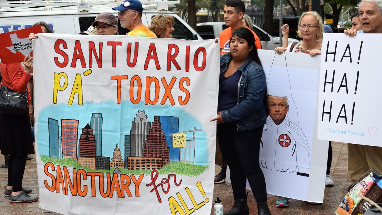 Entre protestas, Sessions visita Texas y apoya la decisión del estado de prohibir ciudades santuario