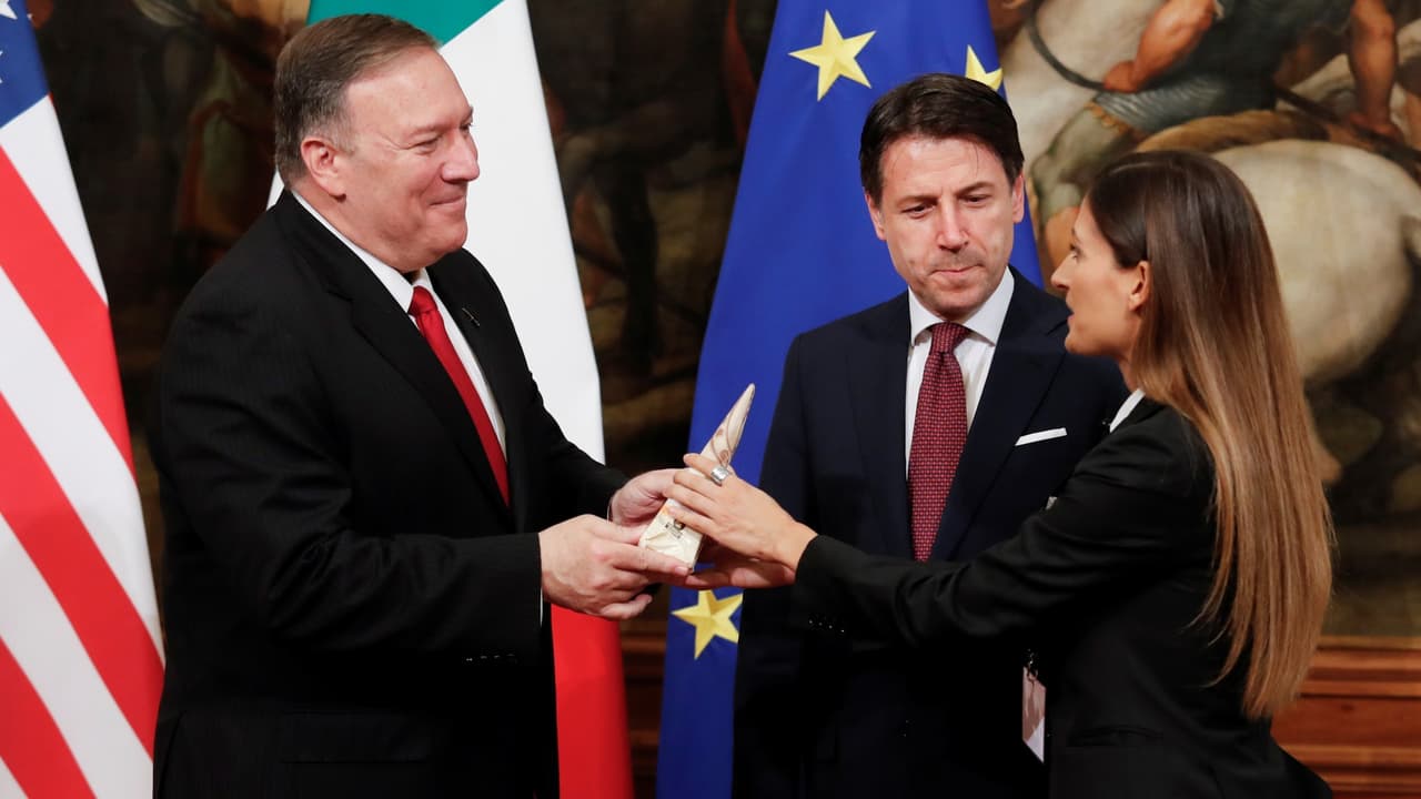 El secretario de Estado, Mike Pompeo, se encuentra de visita en Italia. Allí se reunió con el primer ministro Giuseppe Conte y en medio del evento una periodista se acercó para darle un queso y pedirle que quitara los aranceles que el gobierno de Trump ha impuesto a este tipo de productos.