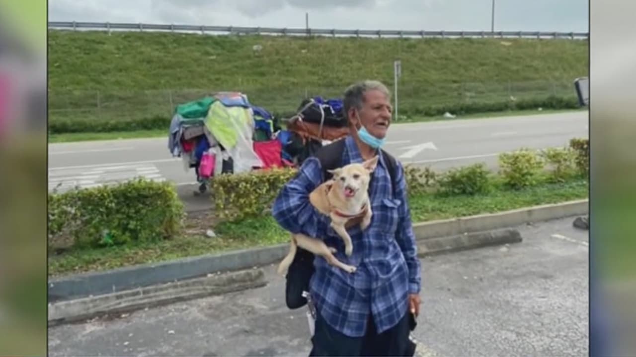 La historia de Pedro Carrión se había hecho viral en los últimos días. Él estaba desconsolado y clamaba que le devolvieran a su perro Sky, que lo acompaña por las calles de Miami desde hace cinco años y que había desaparecido luego de dejarlo atado en una esquina para ir a comprar comida. Este domingo las autoridades rescataron a la mascota y se la entregaron a Carrión, sin embargo, no han aclarado cómo apareció.