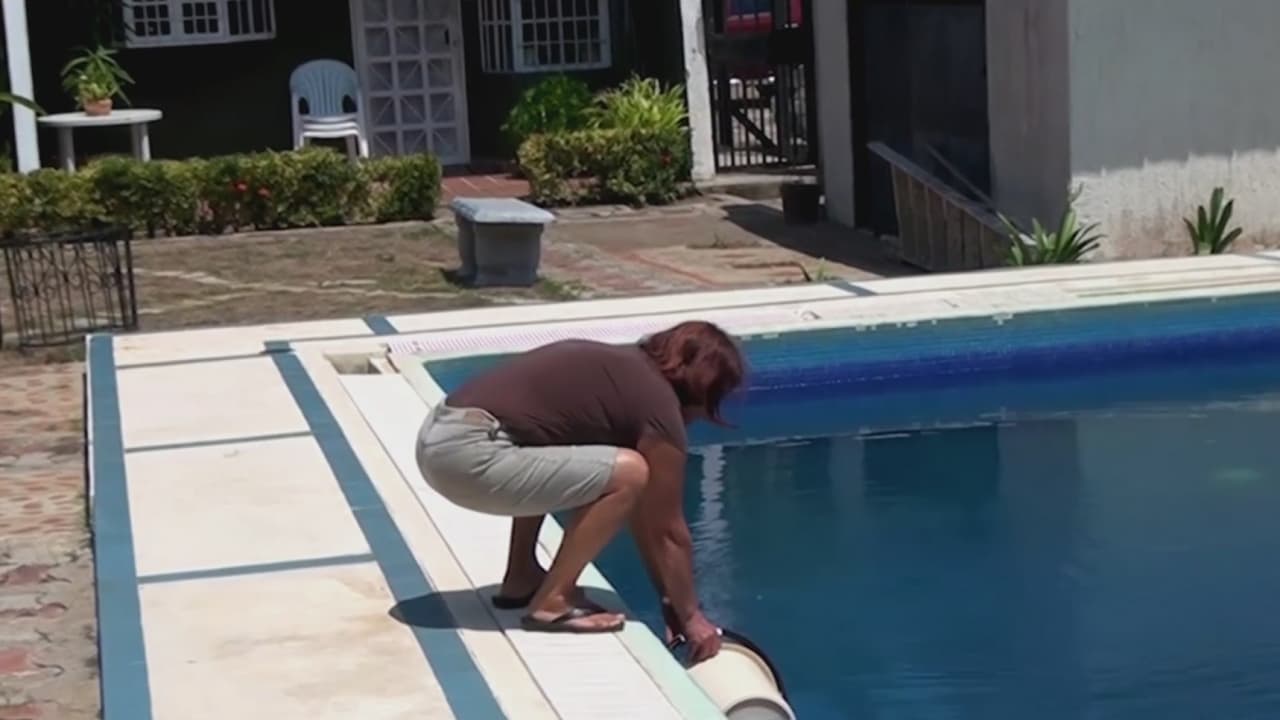 En Isla Margarita, la fuerte sequía ha obligado a los residentes utilizar el agua estancada de las albercas para sus necesidades diarias.