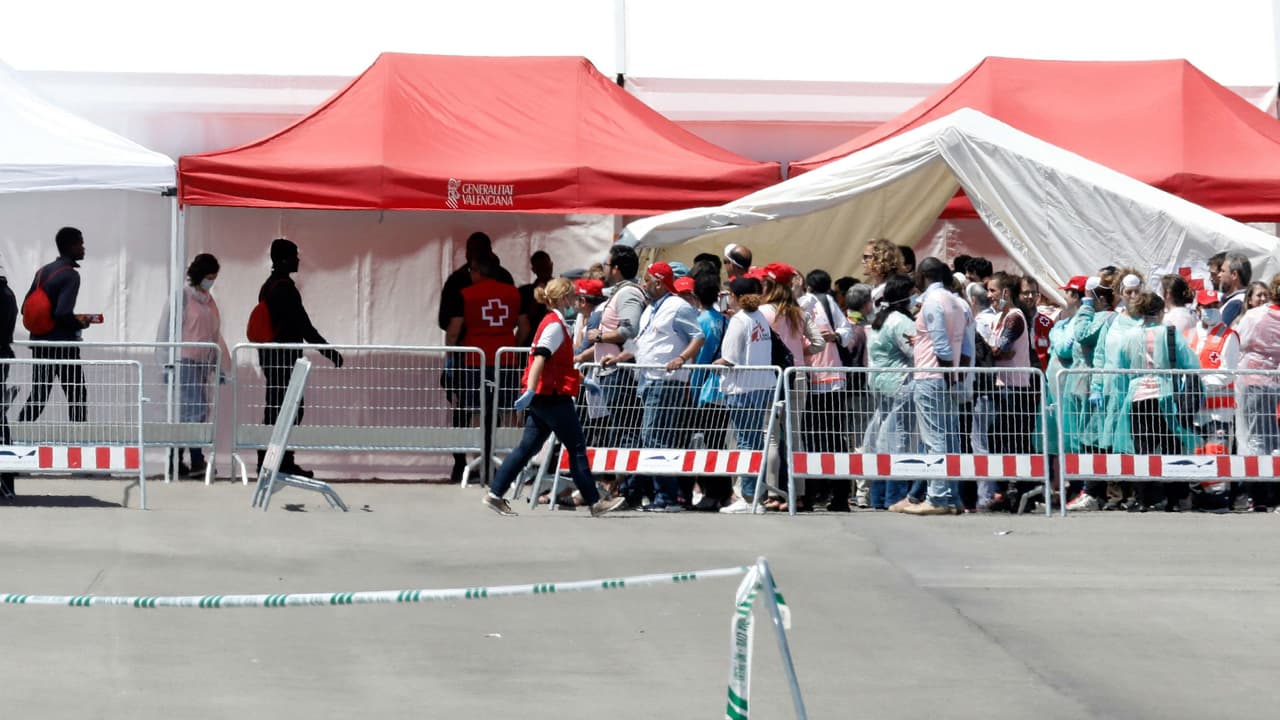 Las personas de diferentes nacionalidades rescatadas en el océano llegaron al puerto de Valencia, luego de que Italia y Malta se negaran a acogerlas. De inmediato recibieron atención sanitaria.