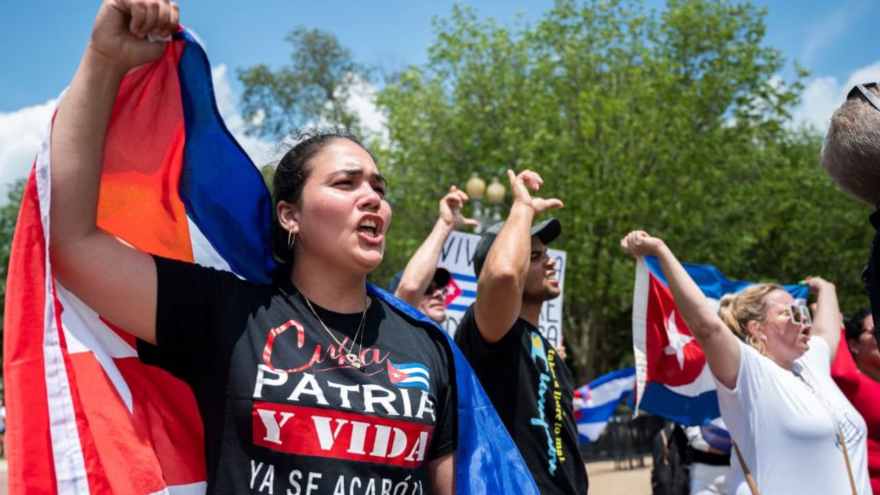 Con arengas, banderas y carteles, decenas de personas, provenientes de diversos estados del país, llegaron a la capital en apoyo al pueblo de Cuba que se enfrenta al régimen en las calles. Además, muchos de ellos le hicieron un llamado al gobierno de Biden para que intervenga militarmente.