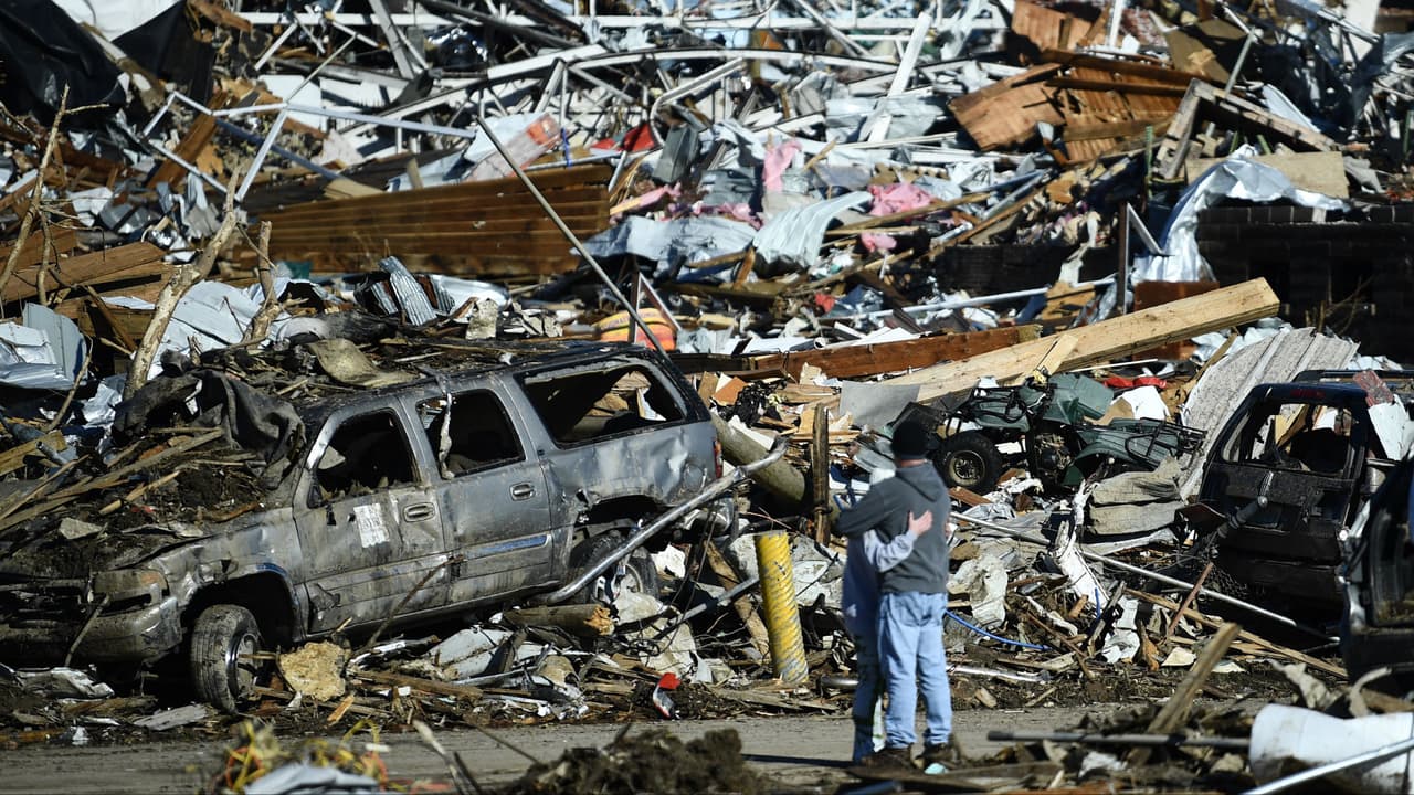 Equipos de maquinaria pesada trabajan sin parar para remover los escombros causados por el paso de tornados en varios estados del país. "Lo invertimos todo aquí", dijo Etelvina Aguilar, una guatemalteca que reside en Kentucky y que junto a su esposo y sus dos hijos pequeños, sobrevivió a la catástrofe. Reportes oficiales indican que más de 90 personas perdieron la vida en infortunada situación.