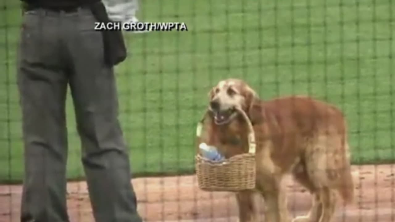 Este perro reparte botellas de agua en un partido de béisbol en Indiana