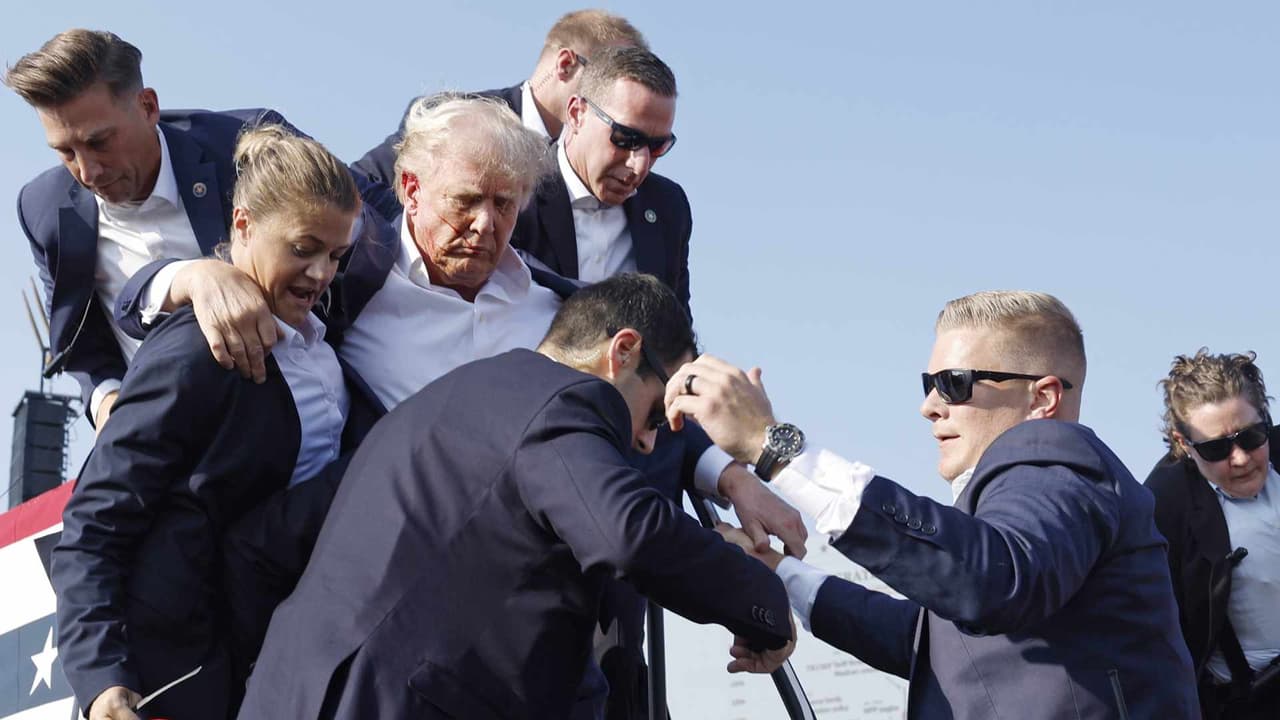 Momentos de pánico se vivieron en un evento de campaña de Donald Trump en Pensilvania luego de que se escucharan disparos entre la multitud. El expresidente fue rodeado por sus guardaespaldas y retirado de emergencia del lugar.