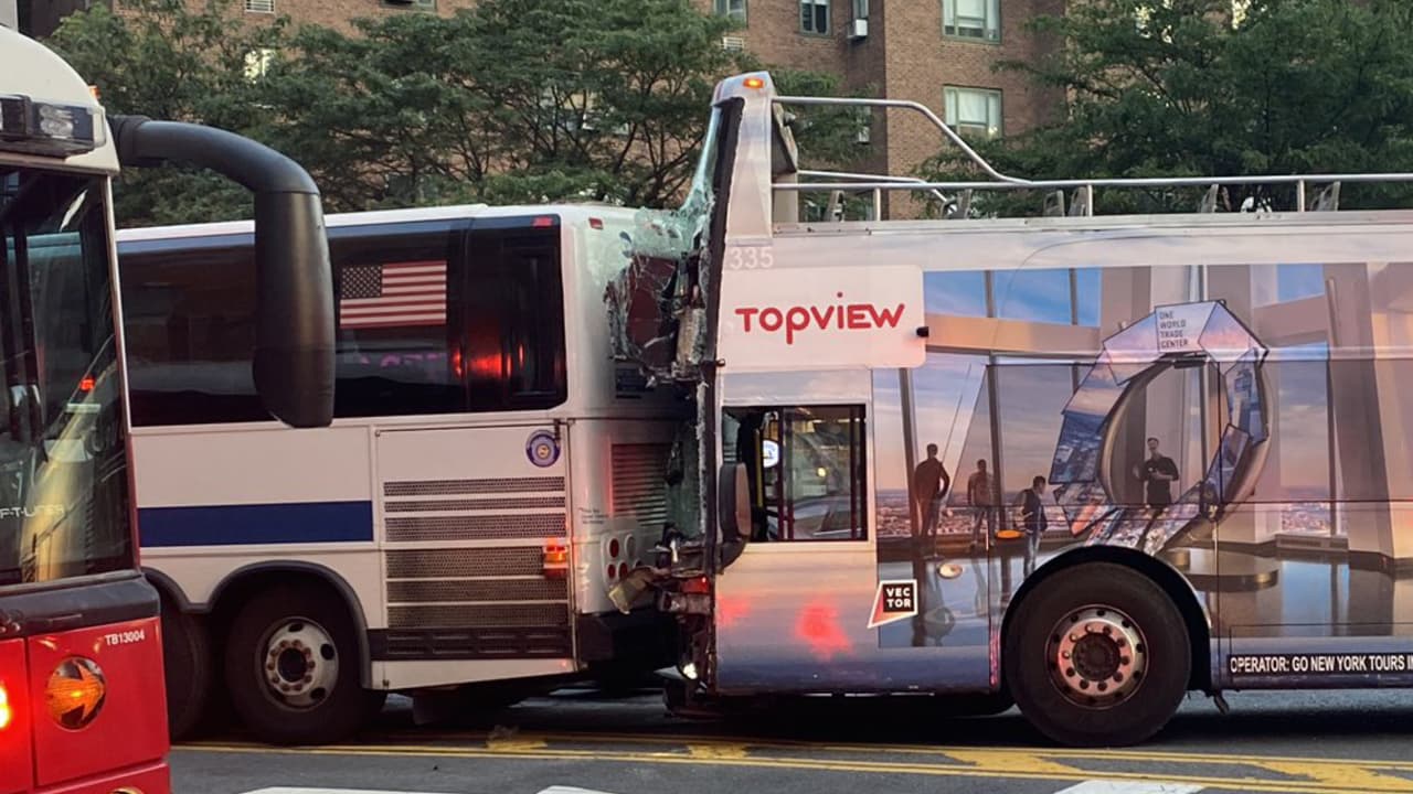 Según reportes preliminares, un autobús turístico de dos pisos impactó contra otro municipal luego de pasarse el semáforo en rojo en una concurrida vía en Manhattan. El incidente, que paralizó el tráfico por unas horas, no dejó víctimas mortales ni tampoco heridos de gravedad, de acuerdo con lo informado por bomberos que atendieron la emergencia.
