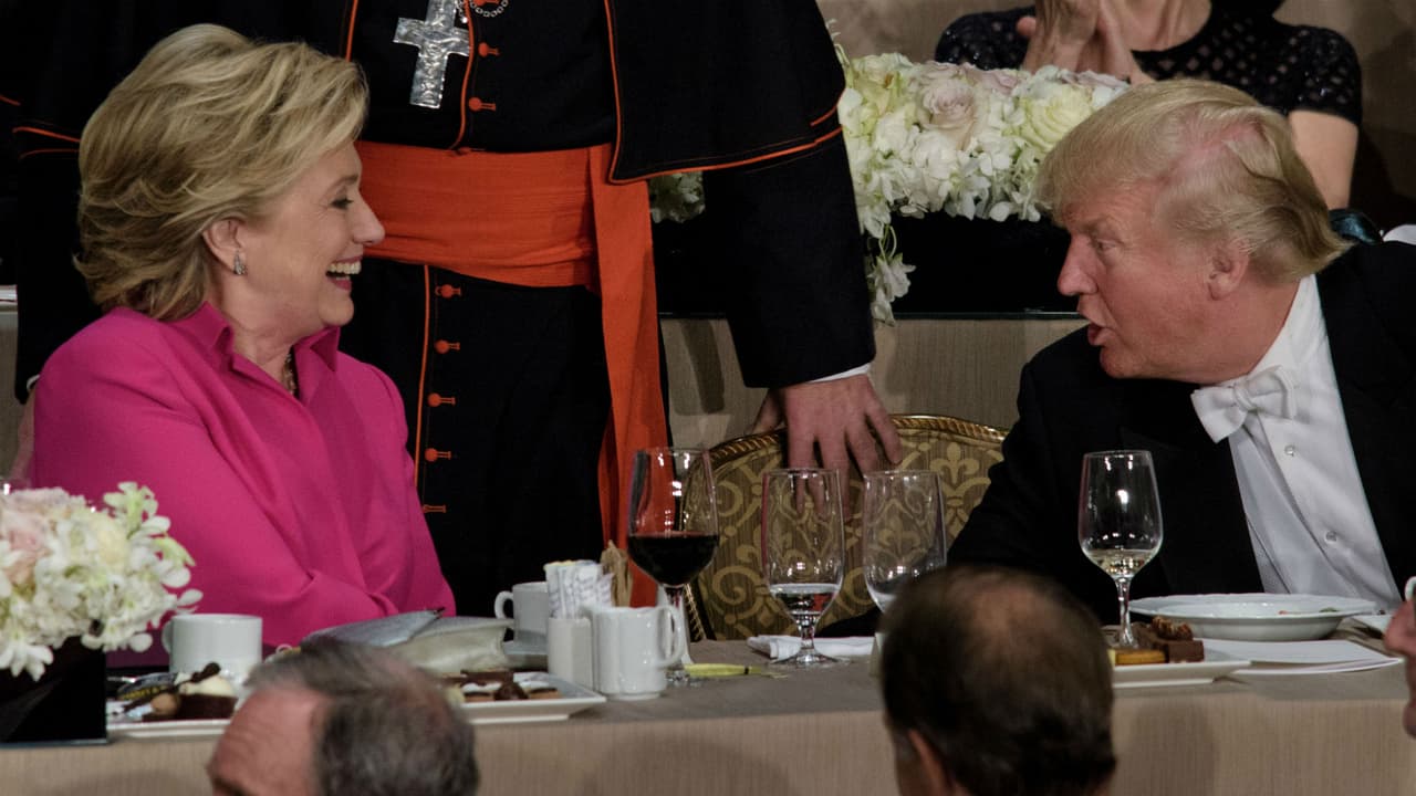 Cada cuatro años se invita a los aspirantes presidenciales a la tradicional cena al Smith con el fin de recaudar fondos para los niños de la ciudad y hacer una pausa cómica en la campaña. Esta vez la cena reflejó la enemistad entre los aspirantes a la Casa Blanca.