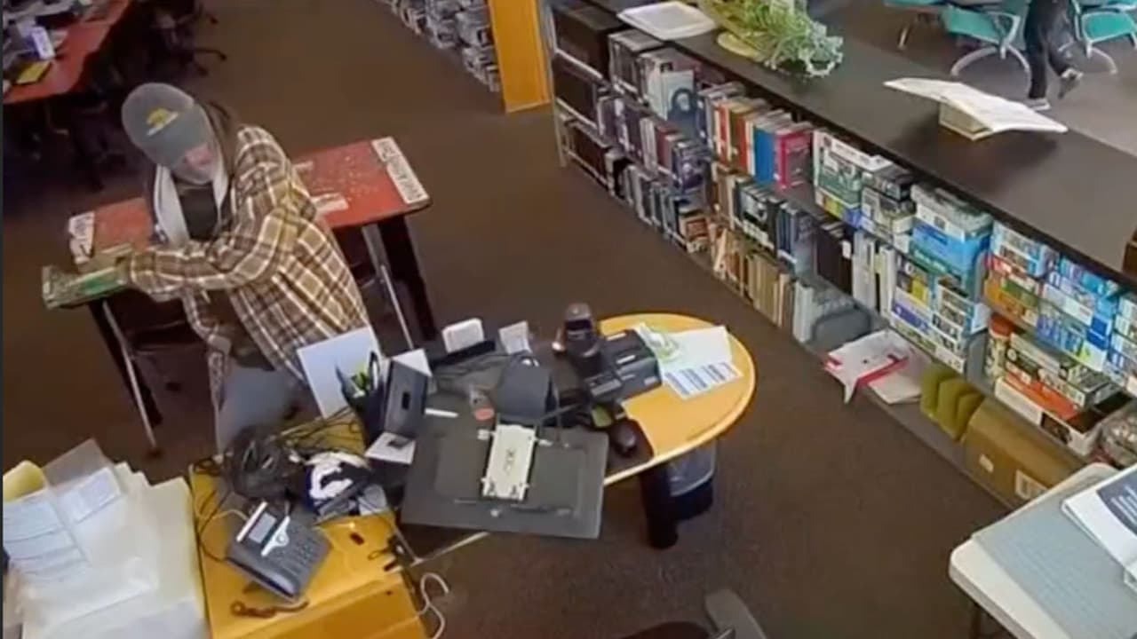 Una cámara de vigilancia captó el momento en que un hombre armado con un hacha entró a una biblioteca en California, aterrorizó a empleados y visitantes, y causó destrozos. Minutos después fue localizado por la policía y, al negarse a soltar el arma y amenazar a un agente, fue baleado.
