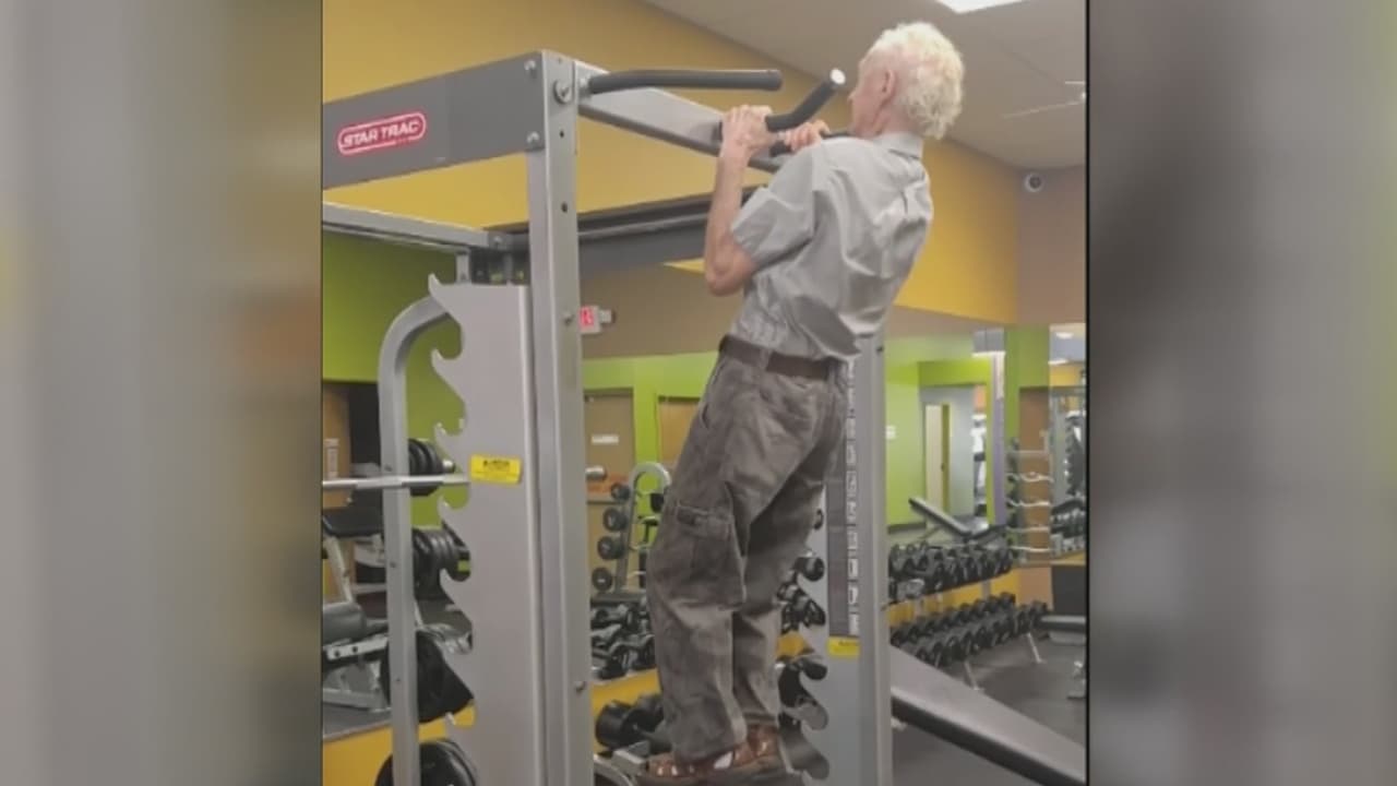 Hombre de 90 años de edad muestra su fuerza y destreza física en un gimnasio de Haines City, Florida