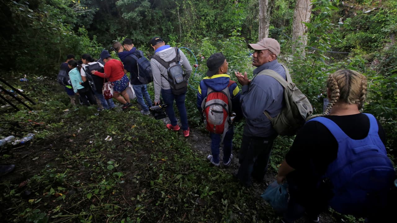 Hondureños tratan de burlar a la policía en la frontera para cruzar hacia Guatemala