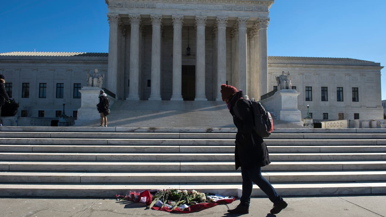 Decenas de personas dejan flores y velas en la Corte Suprema en honor al fallecido Antonin Scalia.