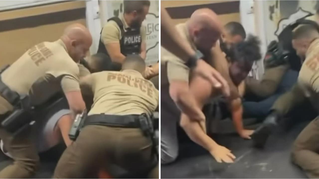 Las imágenes de un grupo de oficiales de la Policía del Condado de Miami-Dade realizando un arresto han encendido el debate en las redes sociales. Uno de los videos muestra cómo más de seis uniformados forcejean con un hombre que se resiste a ser detenido afuera de una tienda. La institución dijo en un comunicado que los agentes involucrados en la pelea fueron reasignados a labores administrativas mientras avanza la investigación.