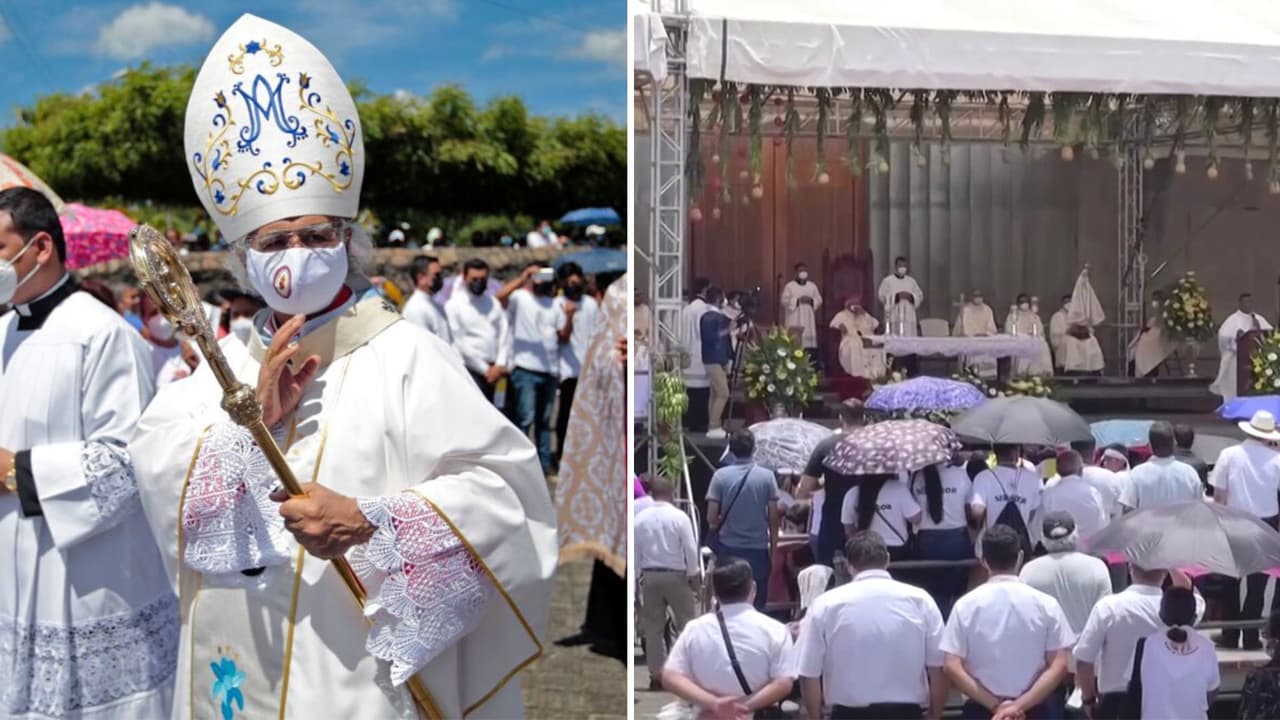Cientos de personas asistieron a una misa al aire libre que se realizó en apoyo al obispo Rolando Álvarez, quien está retenido en su propia parroquia desde hace 10 días, junto a otros cuatro sacerdotes y cinco laicos, acusado por el régimen de Daniel Ortega de desestabilizar el país. La misa se llevó a cabo en el marco de la celebración del congreso mariano, una actividad religiosa que tiene gran valor entre los nicaragüenses.