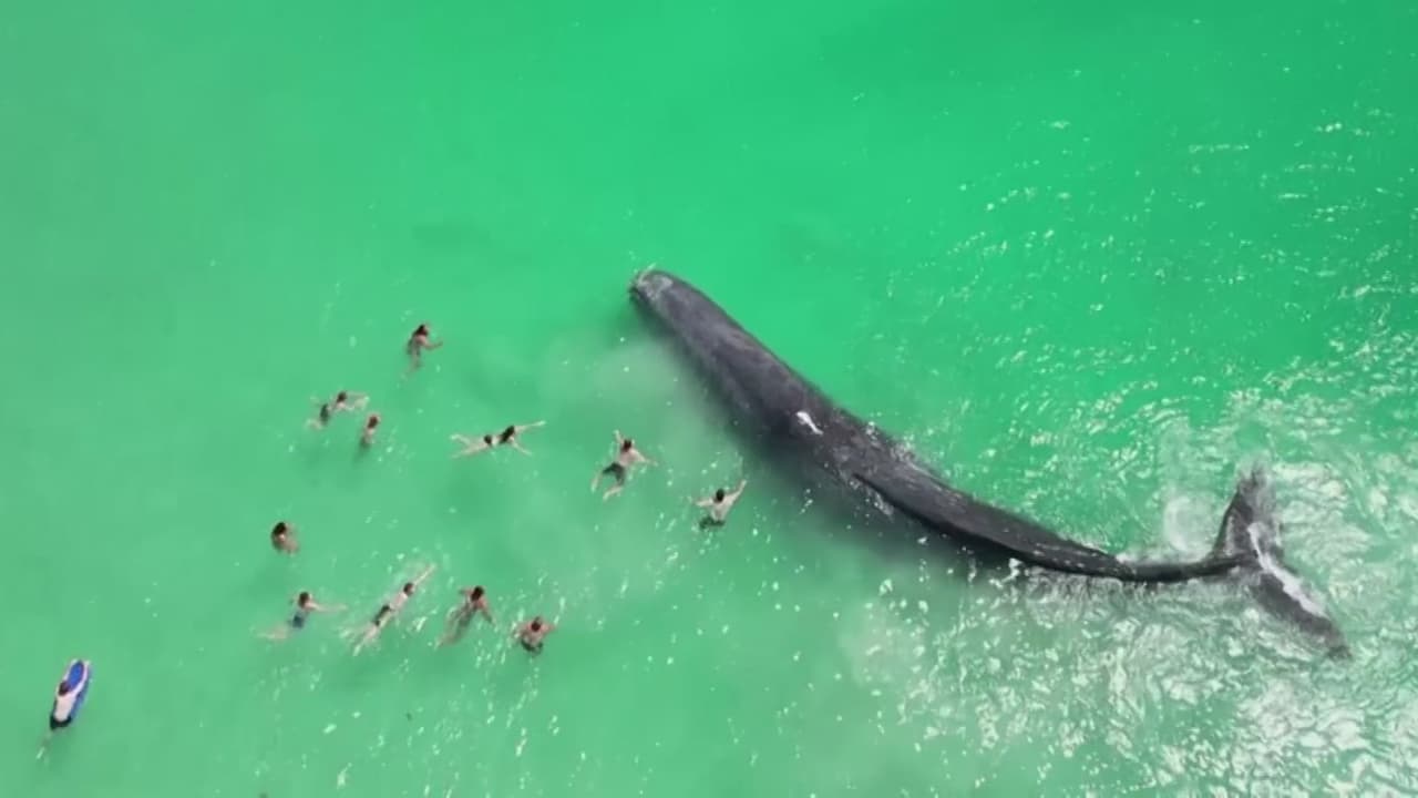 Lo que sería un día normal de playa terminó siendo un día inolvidable para decenas de bañistas, luego de que una ballena llegara a visitar una zona costera en Australia. El inesperado hecho quedó en video y se observa a algunas personas acercarse y tocar al mamífero acuático mientras que este les da un pequeño show al sacar aire de su espiráculo.