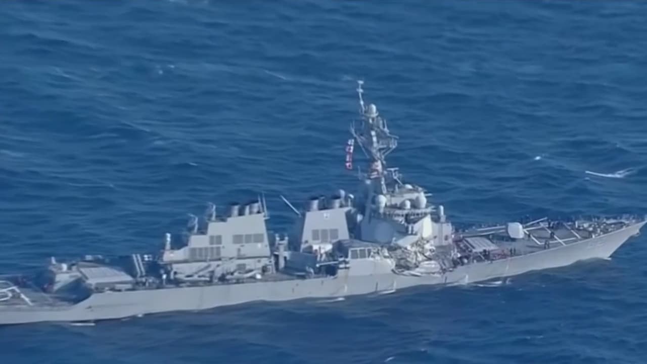 Insólito choque de un barco de guerra estadounidense contra un carguero filipino