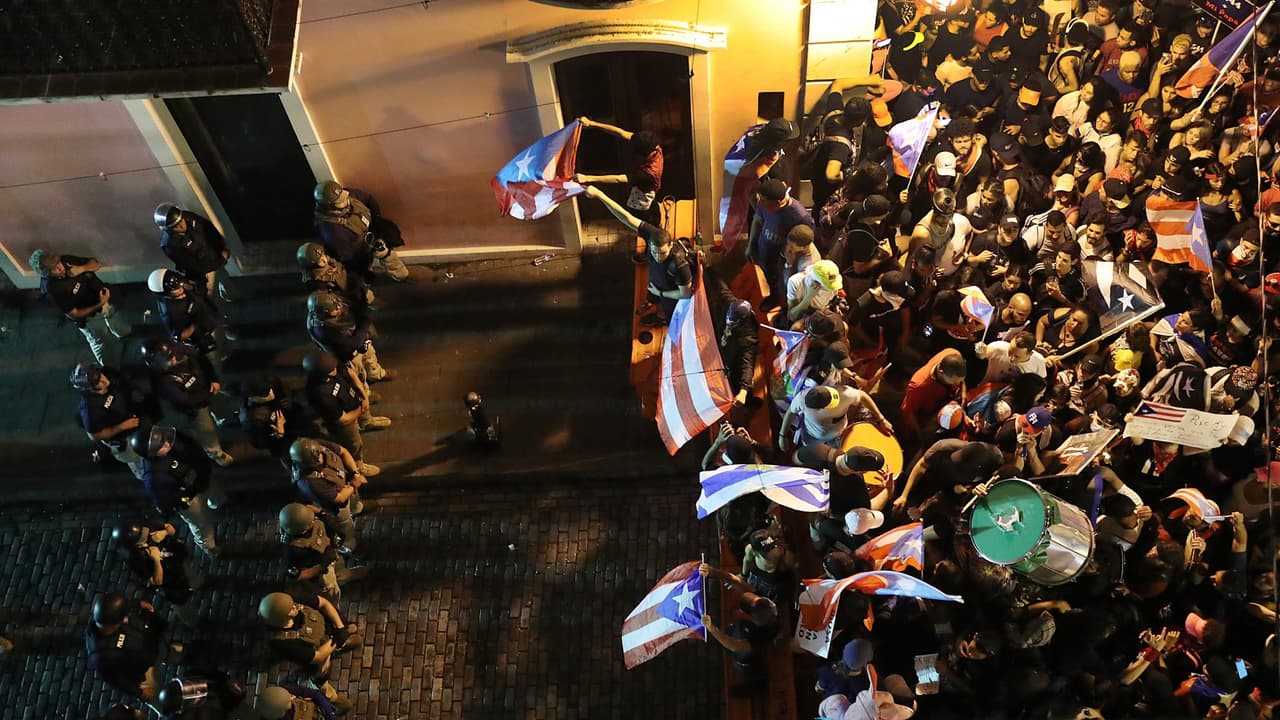 Autoridades lanzaron el gas contra los manifestantes en las calles del Viejo San Juan, Puerto Rico, cuando intentaban dispersar a cientos de personas que se presentaron cerca a la residencia del gobernador para exigir que dimita al cargo. Uno de estos artefactos cayó cerca a los pies del equipo periodístico de Univision Noticias, por lo cual tuvo que resguardarse en una vivienda cercana.