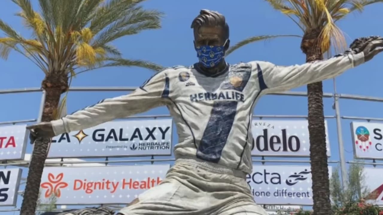 Dominique Mejía creó una máscara para su esposo con el logo del equipo de fútbol LA Galaxy. Cuando su pareja subió la imagen a redes sociales, los pedidos de tapabocas empezaron a llegar de todas partes y uno estaba destinado para la estatua de David Beckham. Ahora, la mujer trabaja hasta 12 horas diarias realizando cubrebocas con diferentes logos deportivos y dice que el dinero le ayudará a pagar la universidad de su hija.
