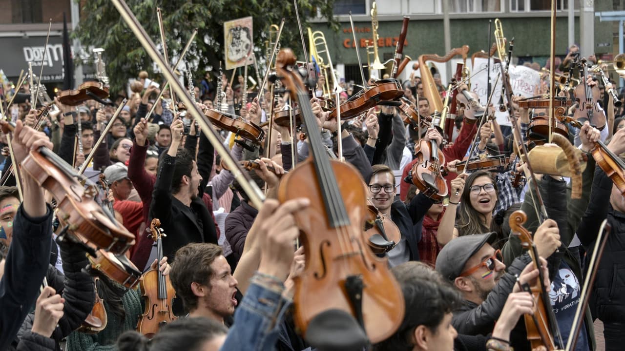La música y los actos simbólicos reemplazan la violencia en el séptimo día de protestas en Colombia