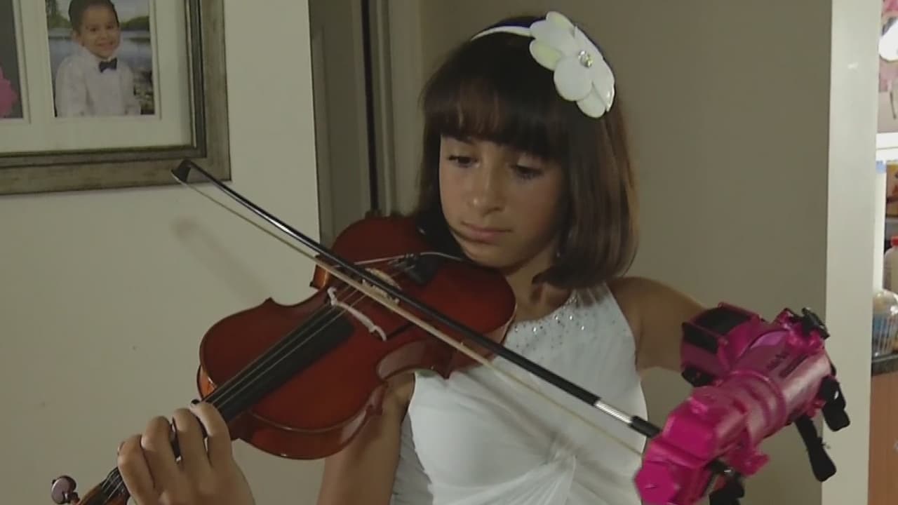La niña sin antebrazo que toca el violín con una prótesis 3D hecha por estudiantes en EEUU